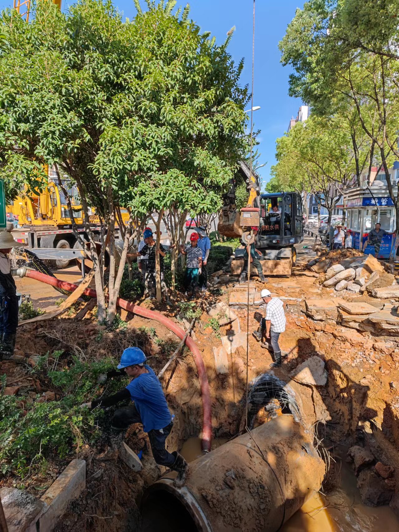 此次爆管口径大,积水多,并且事发地位于交通主干道,周围环境复杂,给协调开挖和排渍工作带来不小困难。