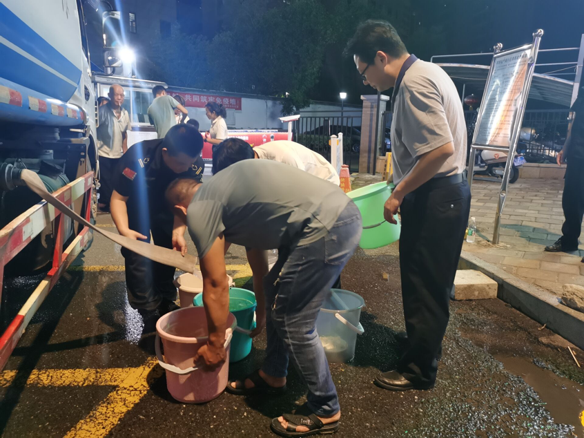 停水期间,市自来水有限公司第一时间联系消防和环卫部门,借用消防车、洒水车,以小区为单位,设立多个送水点,缓解用水难题。
