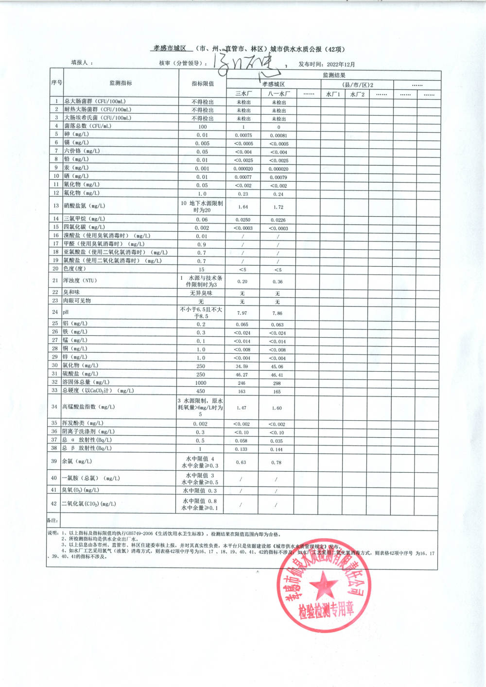 2022年12月水质报告
