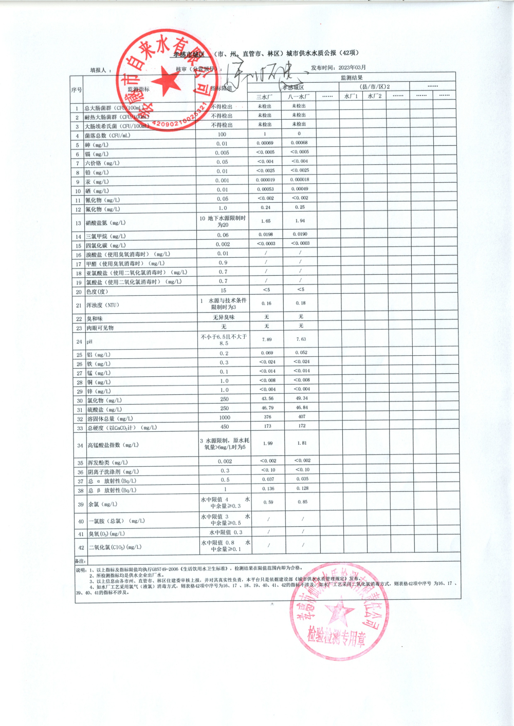 2023年3月水质报告