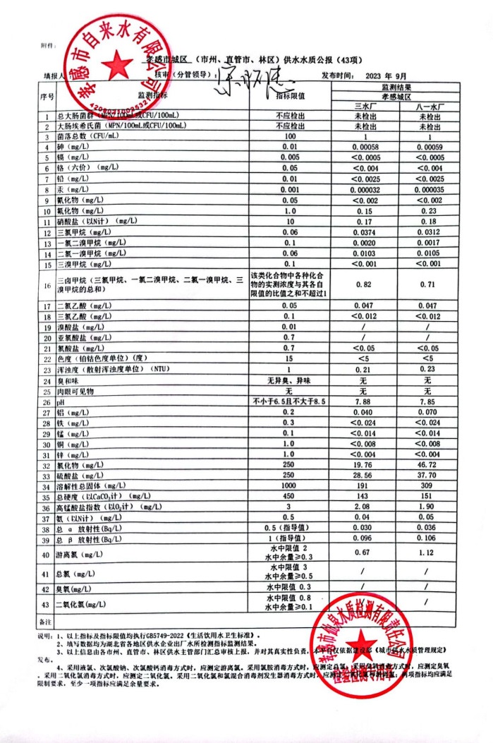 2023年9月水质报告