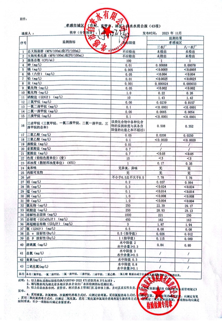 2023年11月水质报告