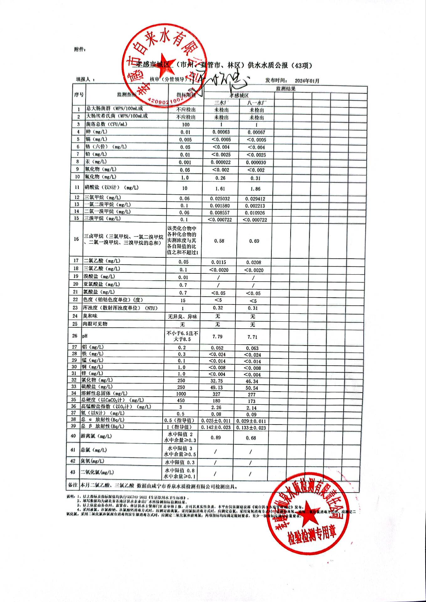 2024年1月水质报告