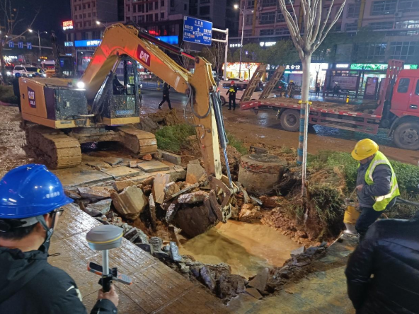 30余名抢修人员克服夜间作业、湿滑泥泞、施工难度大等困难,连续奋战,井然有序的开展一系列抢修工作。至23时左右,除城区乾坤大道、孝三路沿线区域以外,城区其他地方和云梦区域逐步基本恢复供水。经过15个多小时的抢修作业,至25日11时,供水干管已基本修复完毕,城区已恢复供水。