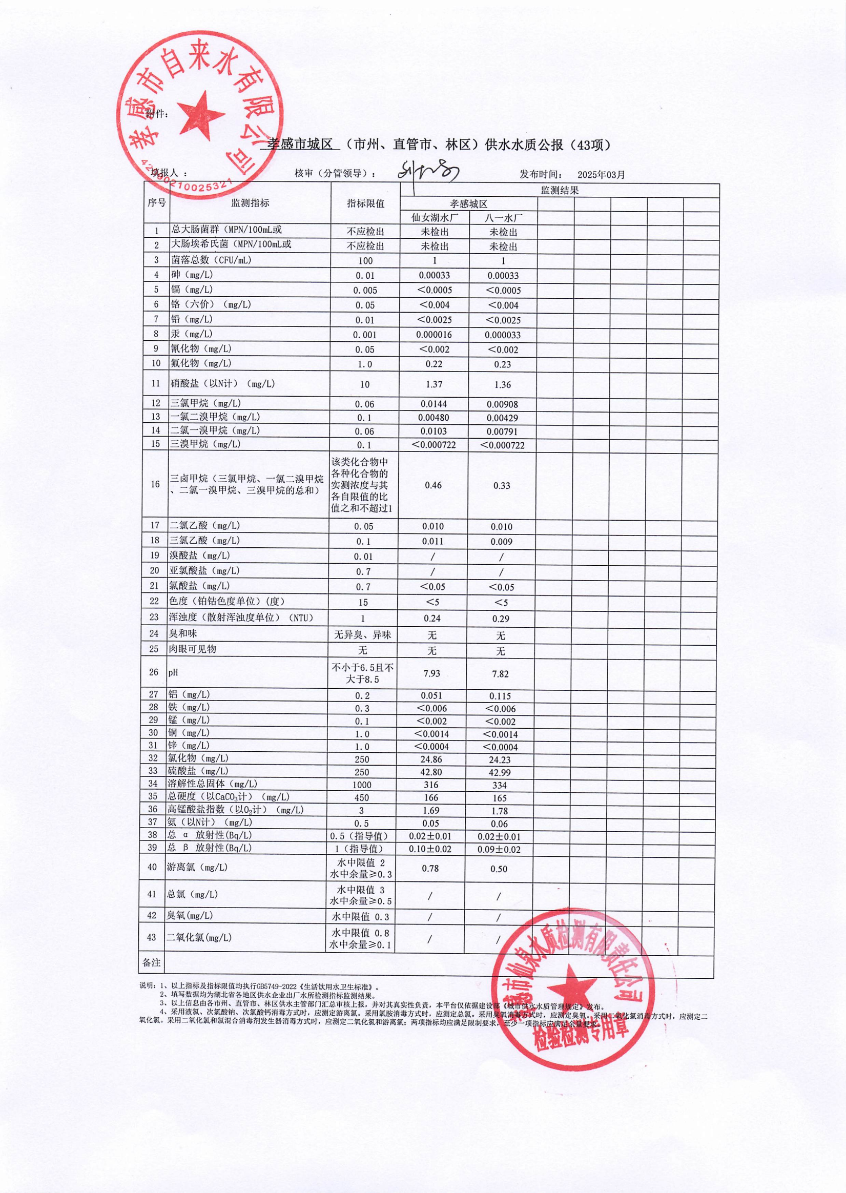 2025年3月水质报告