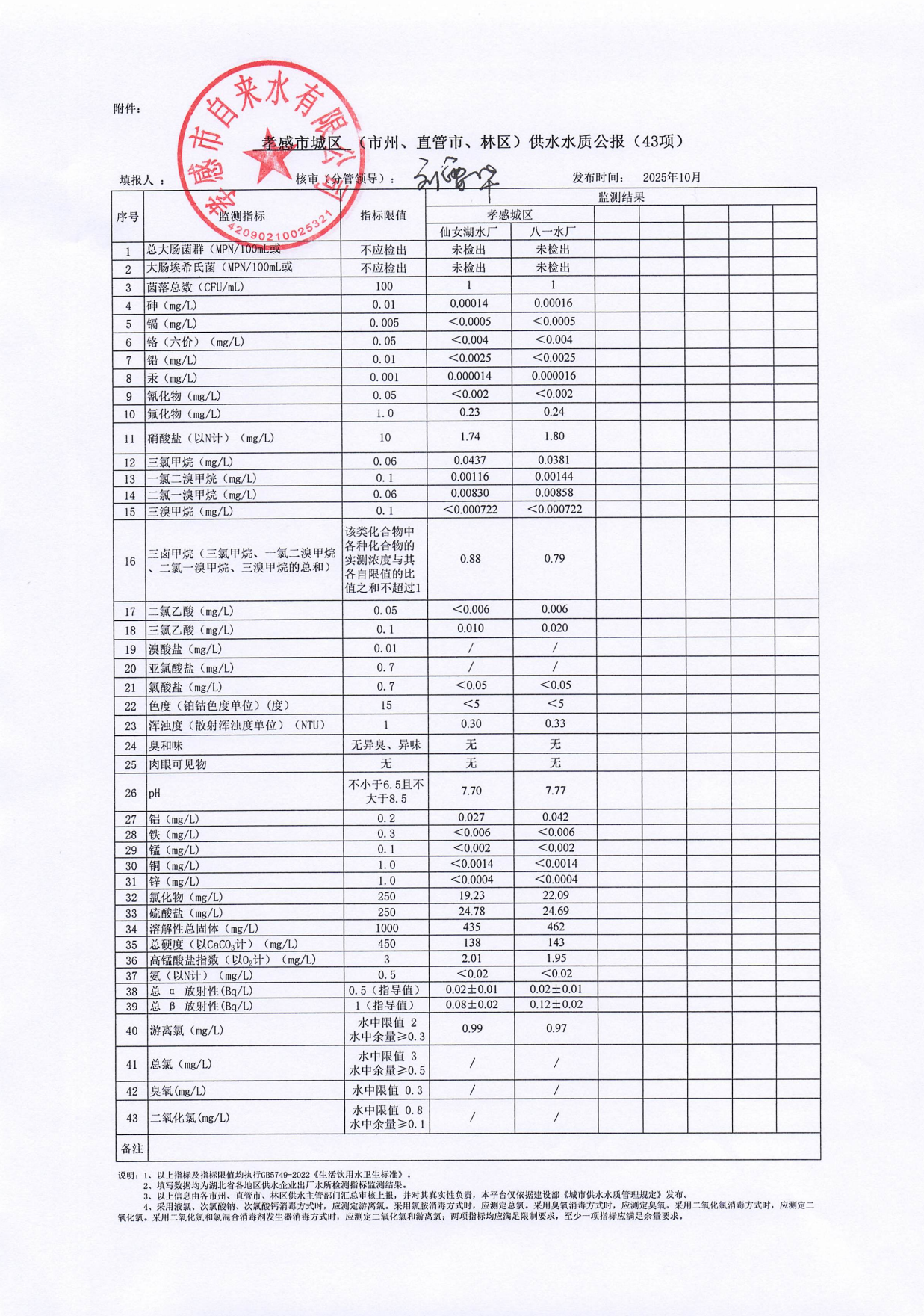 2025年10月水质报告