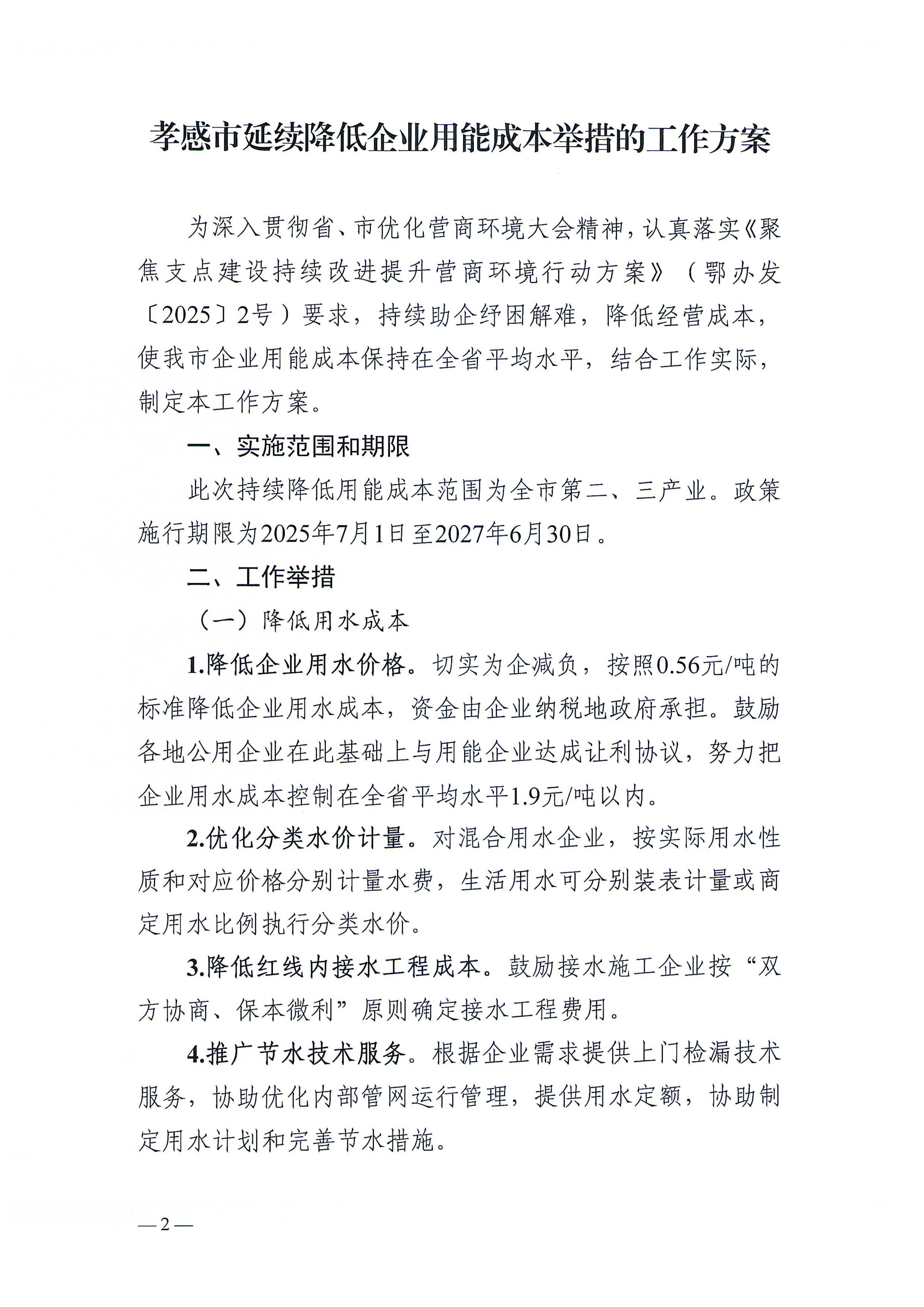 市优化营商环境领导小组办公室关于印发《孝感市延续降低企业用能成本举措的工作方案》的通知