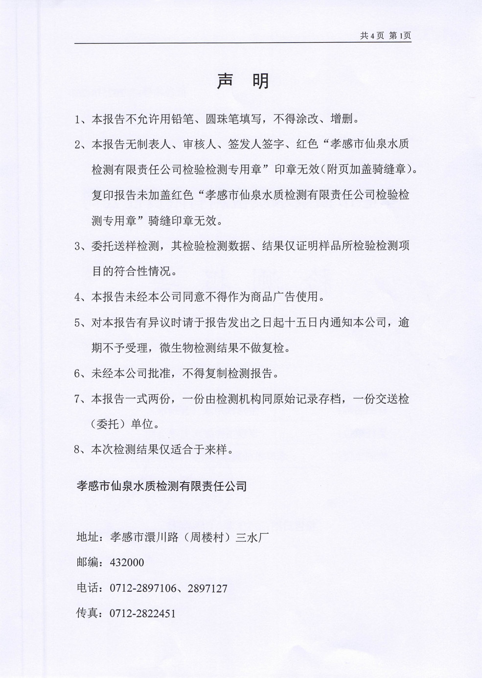 管网水水质公告