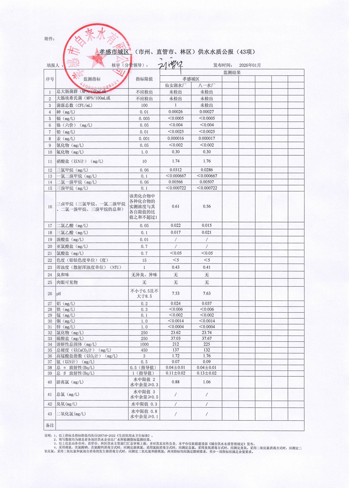 2026年1月水质报告