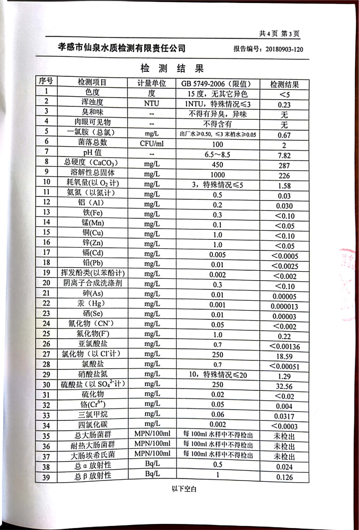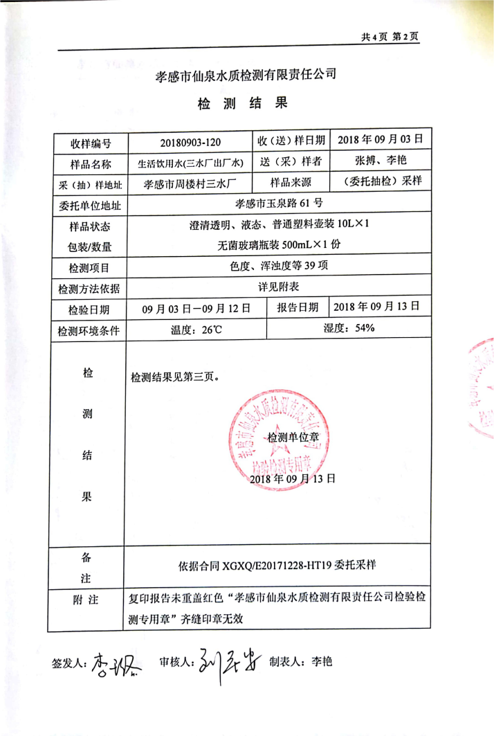 2018年9月水质报告