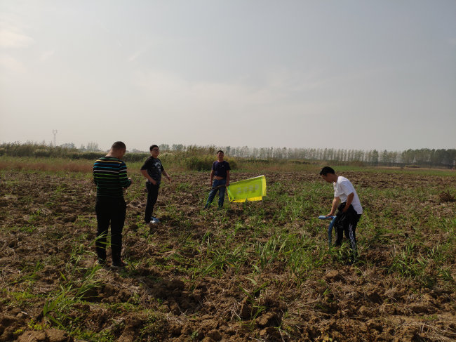 这一天的测量工作一直忙到下午4点才收工,算下来每个人都步行了上十公里。小伙子们的脸上虽然也是一脸灰尘和疲惫,但望着插满彩旗的田野,大家踏着夕阳而返时,神情和话语里洋溢着掩不住的欢欣。