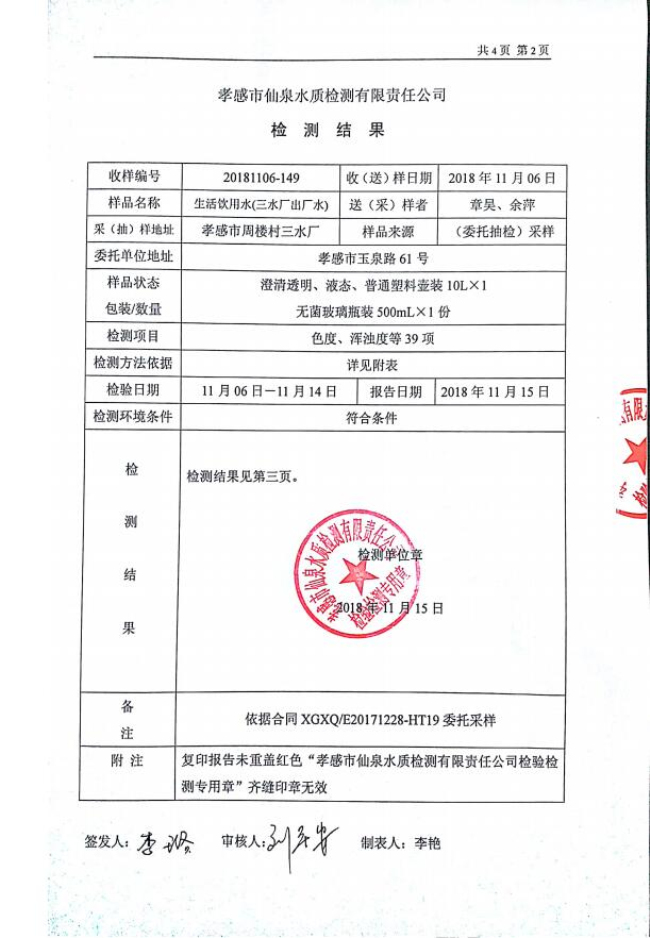 2018年11月水质报告