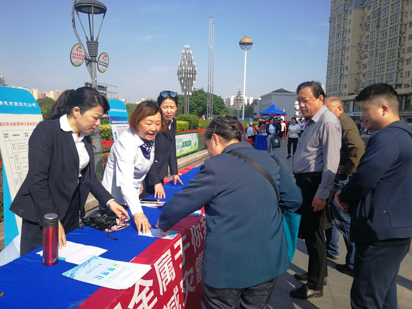 宣传活动中,我公司通过摆放供水安全知识、防灾减灾知识展板、悬挂防灾减灾宣传横幅、发放宣传资料300余份、组织现场咨询等形式,向广大市民讲解我市供水形势、供水节水小常识、供水便民服务政策、防灾减灾方式方法,提升居民的水资源节约意识和防灾减灾能力。活动现场气氛热烈,得到群众广泛参与,营造了“防灾事关你我他,减灾利国又利家”的舆论氛围。