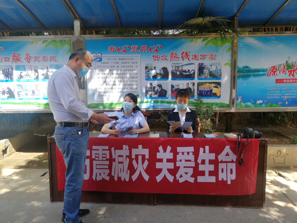 宣传活动中,我公司通过摆放供水安全知识、防灾减灾知识展板、悬挂防灾减灾宣传横幅等形式,向广大市民讲解我市供水形势、供水节水小常识、供水便民服务政策、防灾减灾方式方法,提升居民的水资源节约意识和防灾减灾能力。