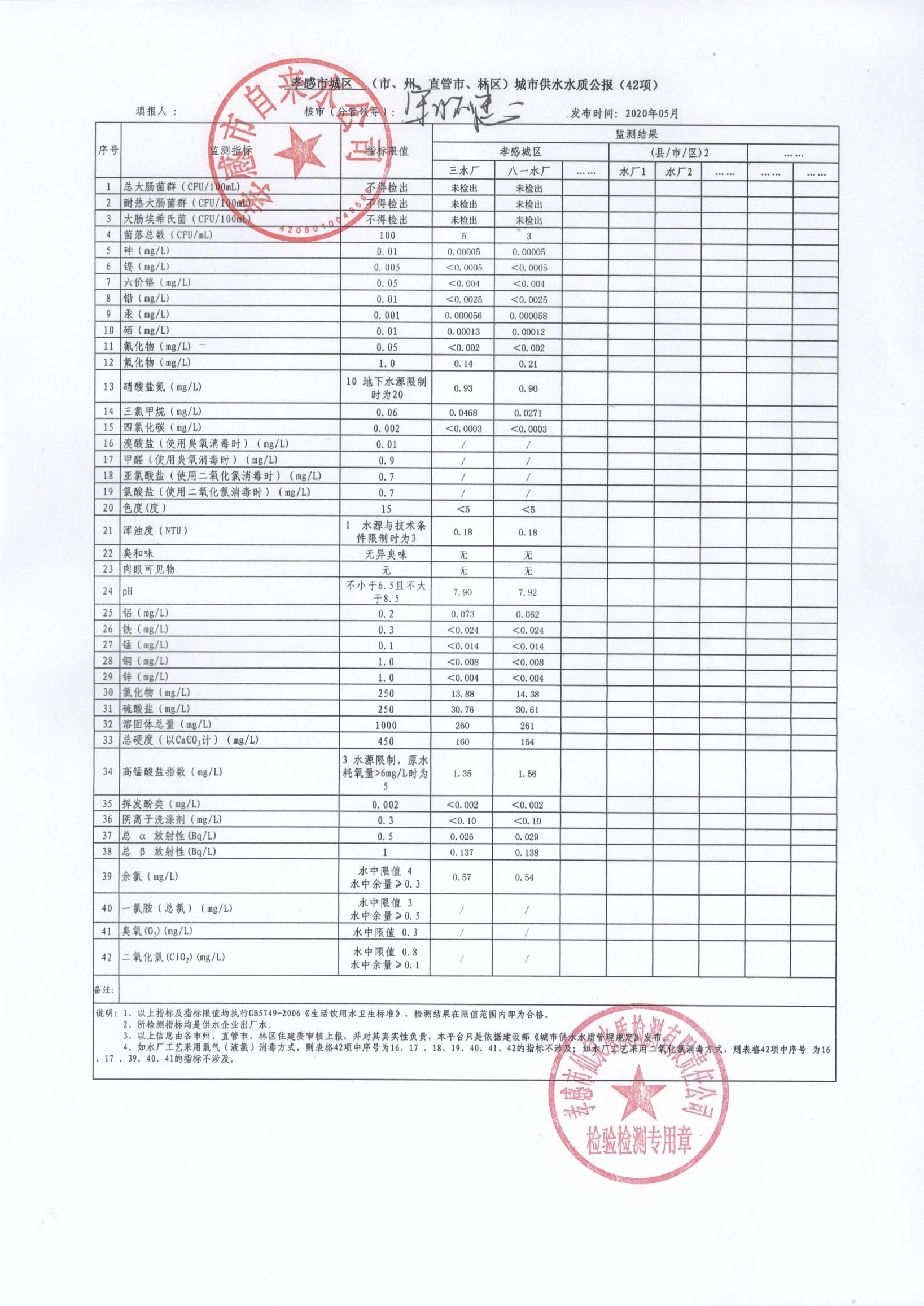 2020年5月水质报告