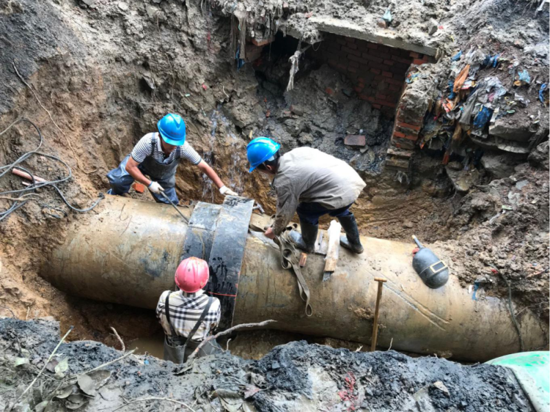 18日下午6点,DN800管道漏点终被挖出,原因是两根水泥管道连接处经过天长日久的热胀冷缩而发生漏水。考虑到停水作业将会影响用户的正常需求,在管道挖出后,抢修人员发挥分工协作的高效作风,一组进行人工清理操作坑底和管上的淤泥,一组负责备料,一组关闸调水。下午7点,材料到位,操作坑内5名维修人员加紧手中动作,一刻不停进行管道清理、抢修节包裹、拧螺栓……19日凌晨,经过14个小时的紧急抢修,DN800供水管道维修工作顺利完成,主城区全面恢复正常供水。