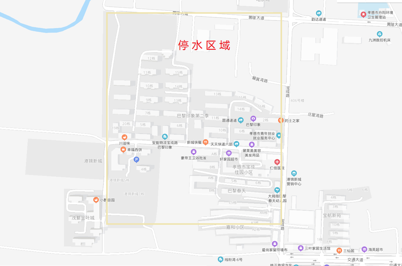 因宝成路巴黎印象供水管网碰头,我公司将于2020年9月18日(周五)晚21:00至次日早晨8:00进行施工作业(如遇雨天,施工顺延),届时仁信医院、巴黎印象,巴黎春天、港锦新城、宝成佳园等小区及周边区域将暂停供水。请上述区域的客户相互转告,提前储水备用,并及时检查和关闭内部用水设施。