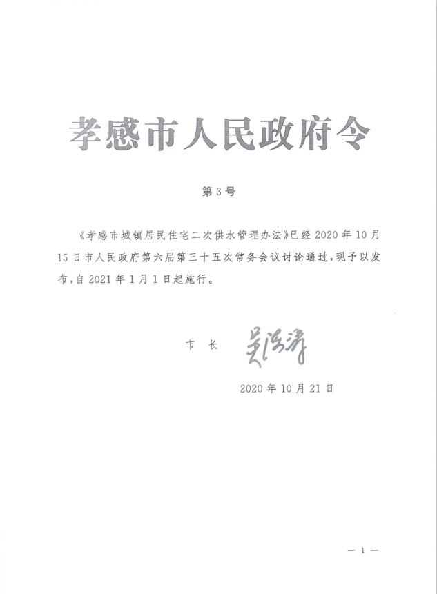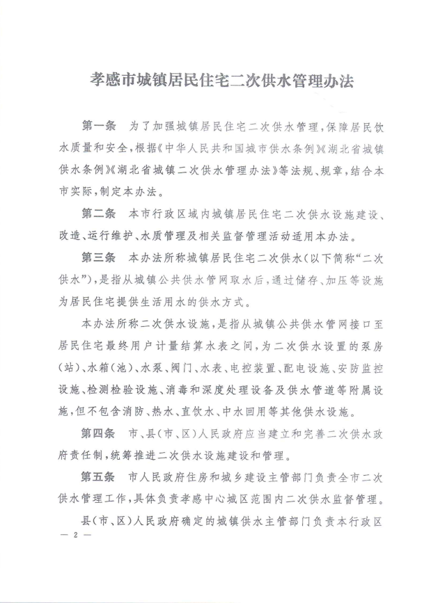 孝感市城镇居民住宅二次供水管理办法