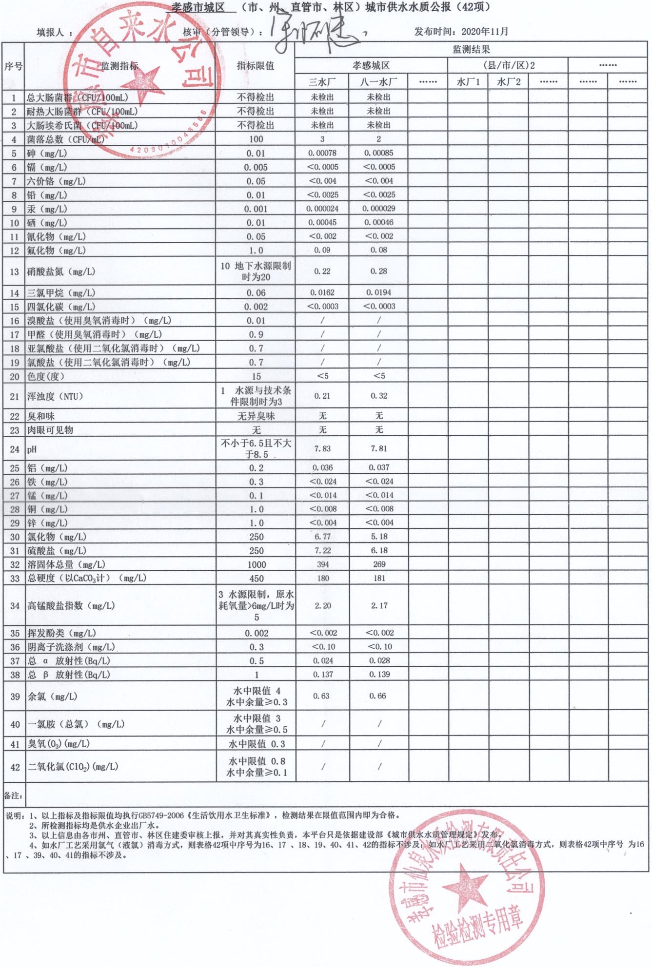 2020年11月水质报告